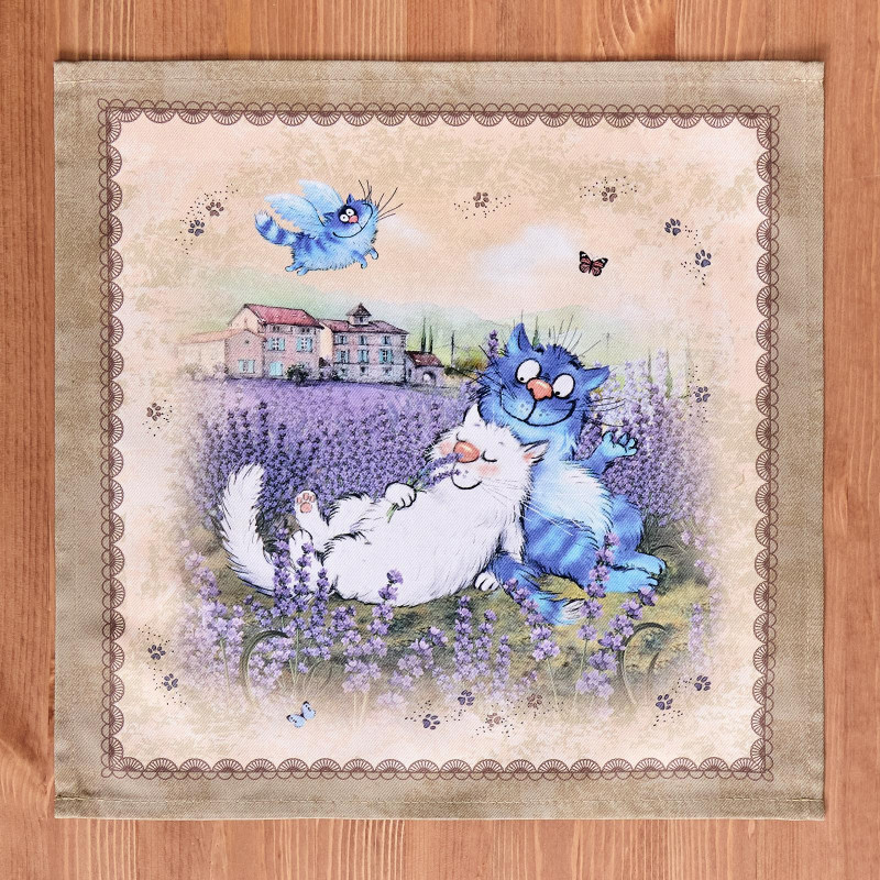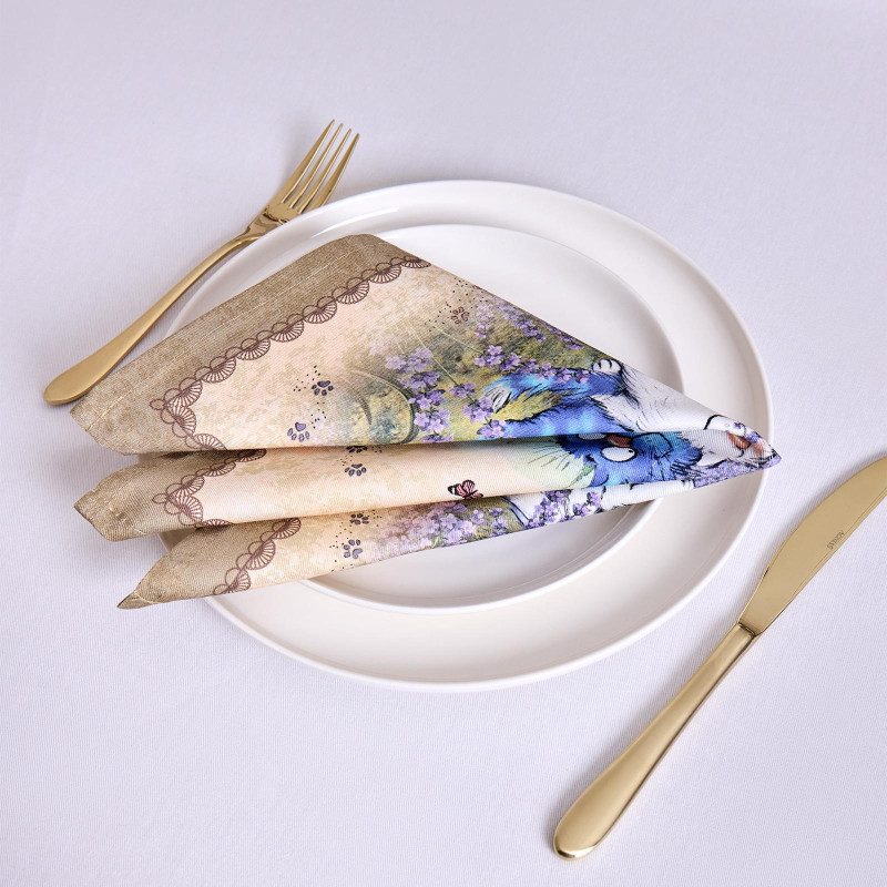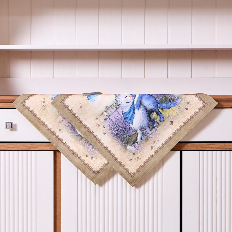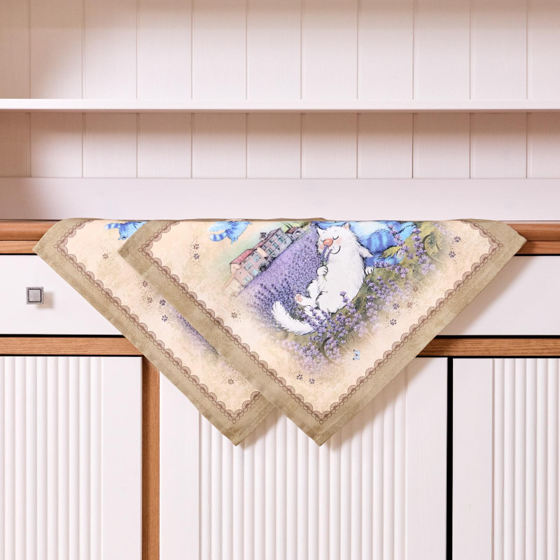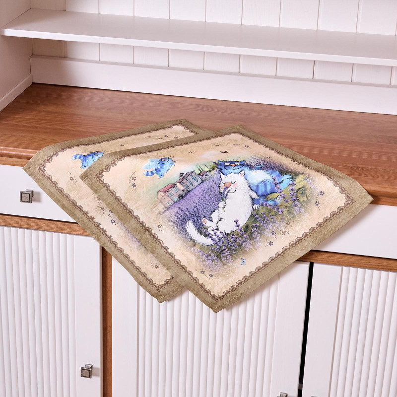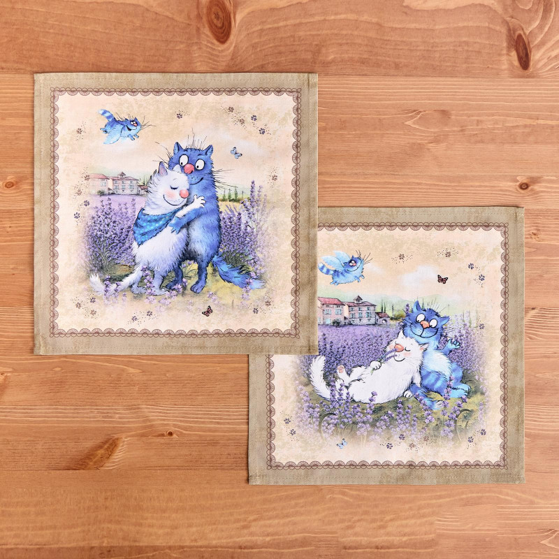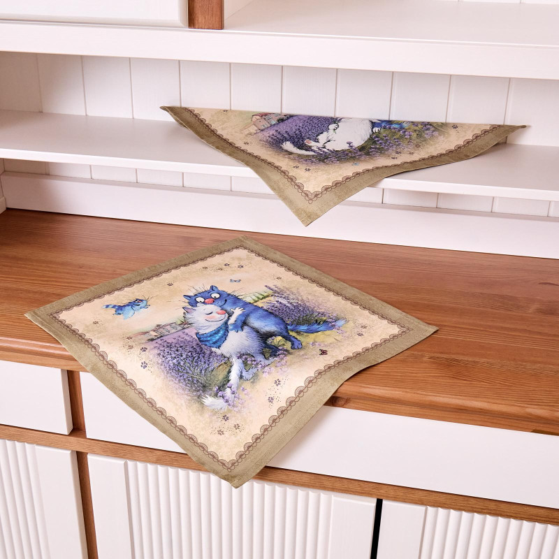 Набор салфеток из 2-х шт " СИНИЕ КОТЫ. ЛАВАНДА" ,40х40см, 100% хлопок,твил, беж LEFARD 850-718-81