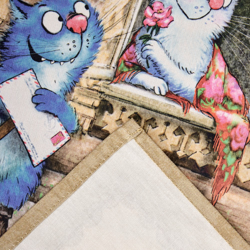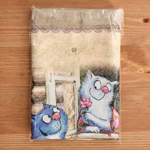 Набор тканевых салфеток от бренда Lefard из серии "Синие коты. Любовь моя" по мотивам иллюстраций Рины Зенюк. Этот комплект из двух квадратных салфеток станет отличным дополнением вашего интерьера. Они изготовлены из высококачественного 100% хлопка с саржевым переплетением Твил. Эта ткань не заламывается и не мнется, имеет высокую плотность, благодаря чему изделия из неё выглядят аккуратно и элегантно.