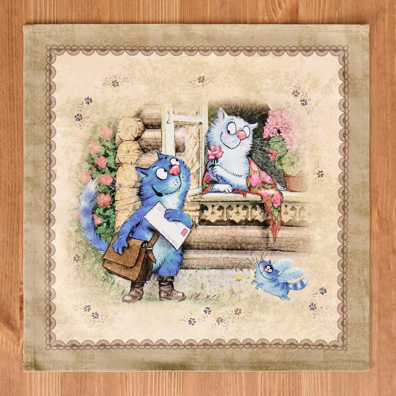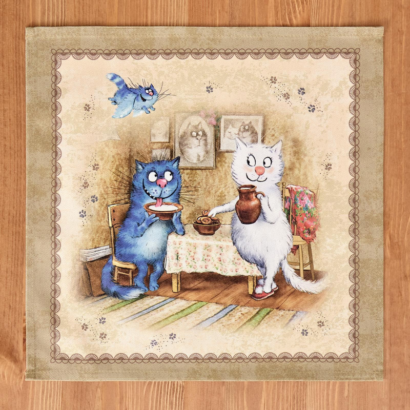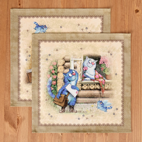 Набор салфеток из 2-х шт "СИНИЕ КОТЫ. ЛЮБОВЬ МОЯ",40х40см, 100% хлопок,твил, беж LEFARD 850-719-81
