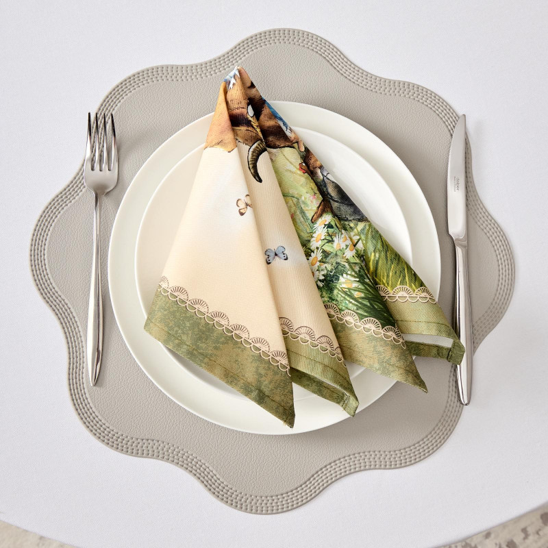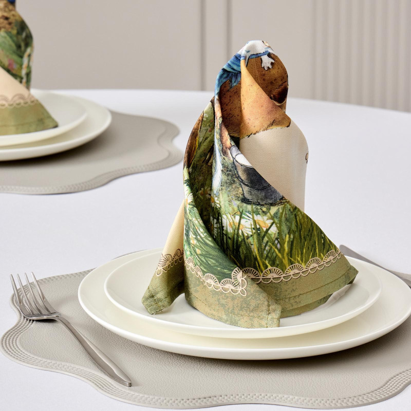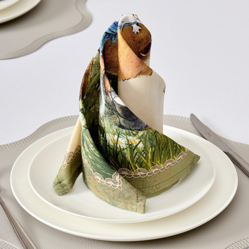 Текстильные салфетки, изготовленные из хлопка, являются экологичными, гипоаллергенными и многоразовыми. Рисунок выполнен по технологии цифровой печати, она позволяет передать все многообразие красок. Такие сервировочные салфетки выглядят красиво и четко, каждый штрих детально прорисован во всём многообразии оттенков. Удобный размер 40*40 позволяет использовать тряпочные салфетки на кухне вместо полотенец.