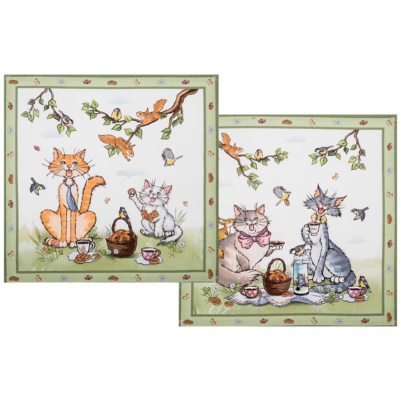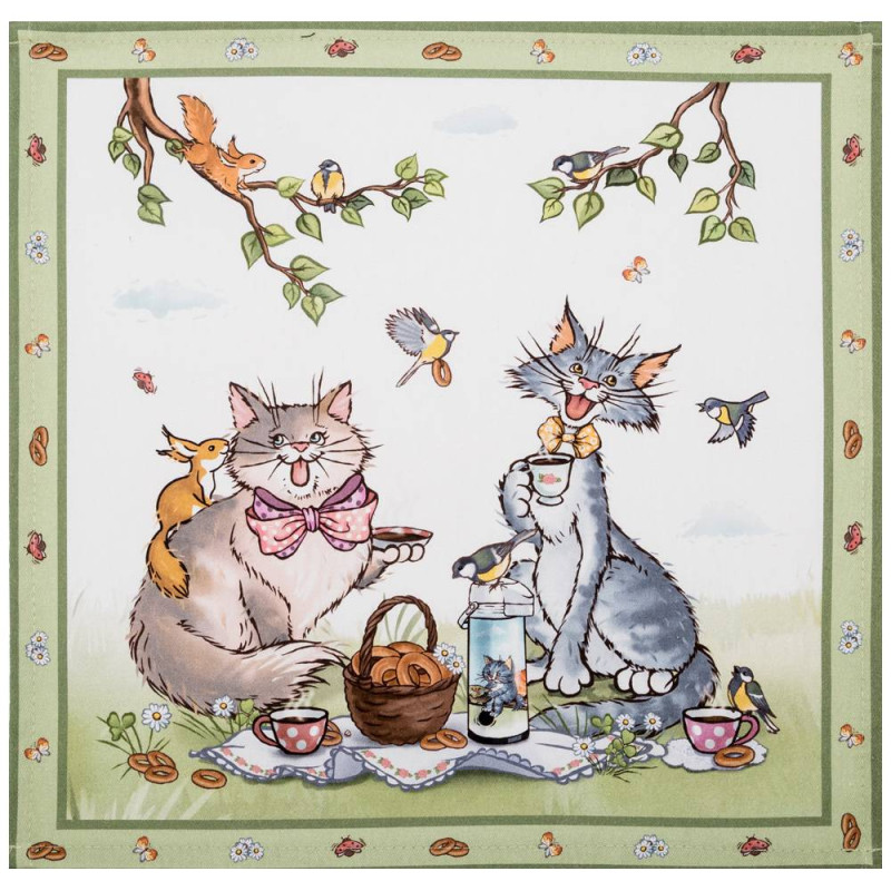 Сюжет с забавными котами и аппетитной тематикой на бело-зелёном фоне смотрится ярко и оригинально. Благодаря качественной цифровой печати рисунок отличается высокой детализацией и устойчивостью к стирке — цвета не тускнеют даже при активном использовании.
