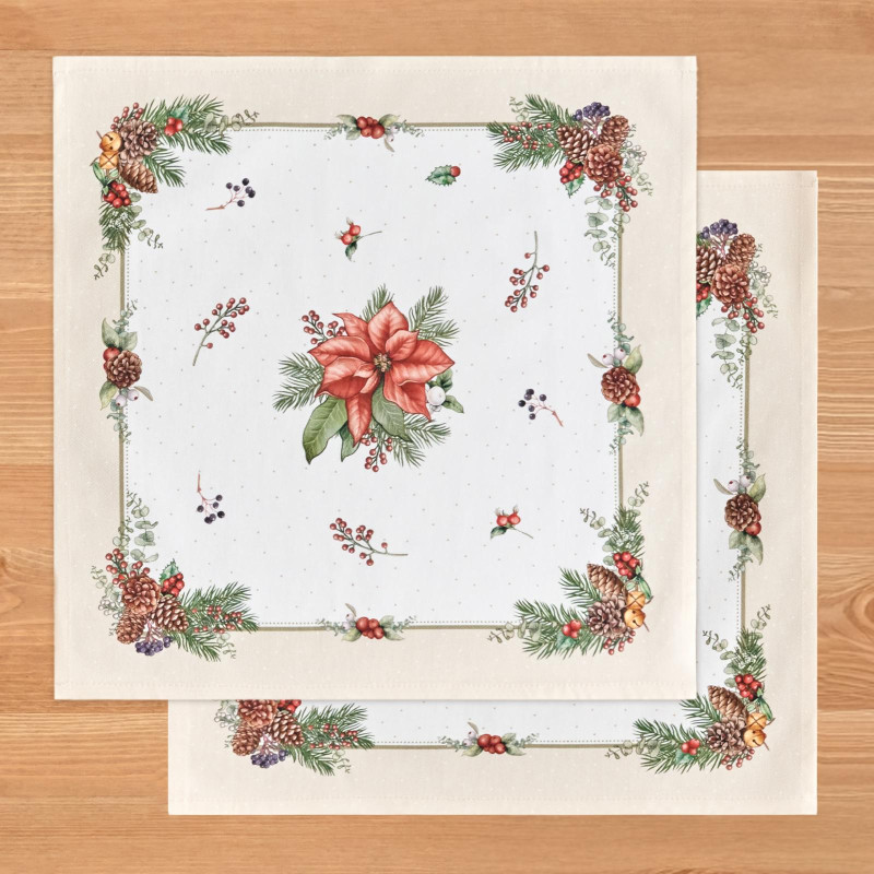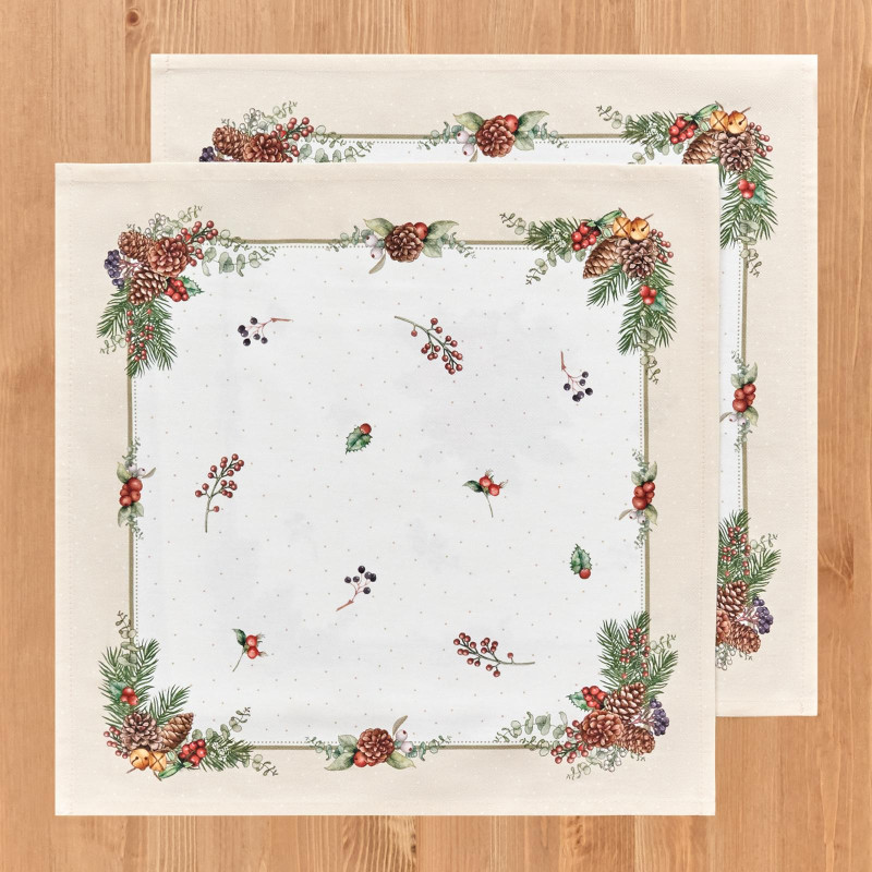 Создайте праздничную атмосферу с набором новогодних и рождественских салфеток Lefard Celebration. В комплекте — 2 квадратные тканевые салфетки 40×40 см из 100% хлопка твил — плотной ткани с саржевым переплетением, устойчивой к сминанию и износу.