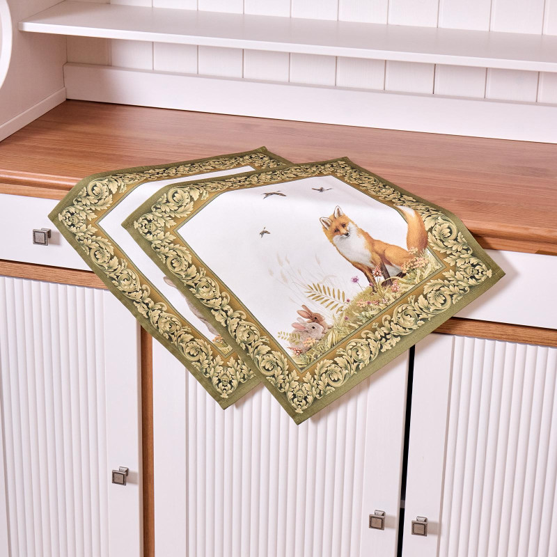 Такие сервировочные салфетки с лисой выглядят красиво и четко, каждый штрих детально прорисован во всём многообразии оттенков.