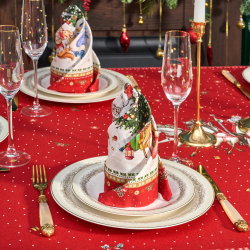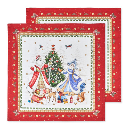Набор тканевых новогодних салфеток от Lefard создан по эксклюзивному дизайну для серии посуды «С Новым Годом». В комплект входят две квадратные салфетки 40×40см — идеальный формат для сервировки стола и украшения интерьера. Они изготовлены из высококачественного 100% хлопка с саржевым переплетением твил, которое обеспечивает плотность, износостойкость и аккуратный внешний вид. Ткань не мнётся, не заламывается и хорошо держит форму.