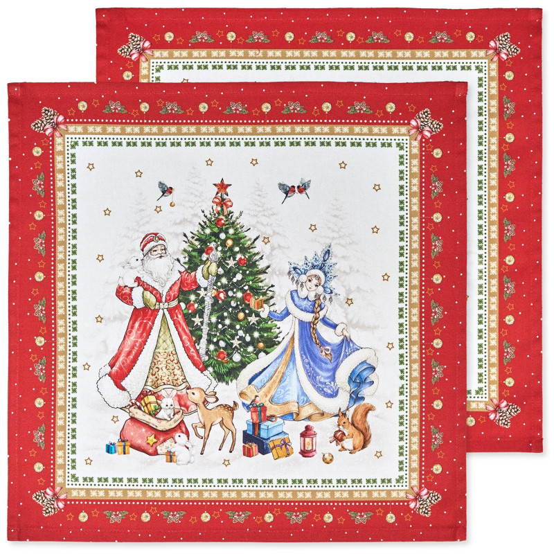 Набор салфеток из 2-х шт " С НОВЫМ ГОДОМ" , 40х40см, 100% хлопок, красный, твил, LEFARD 850-763-8