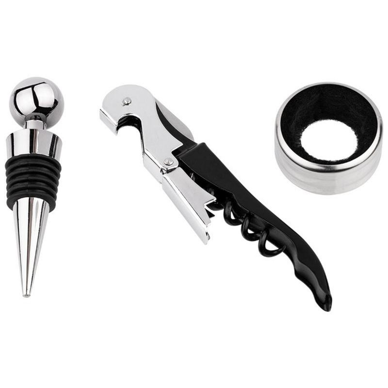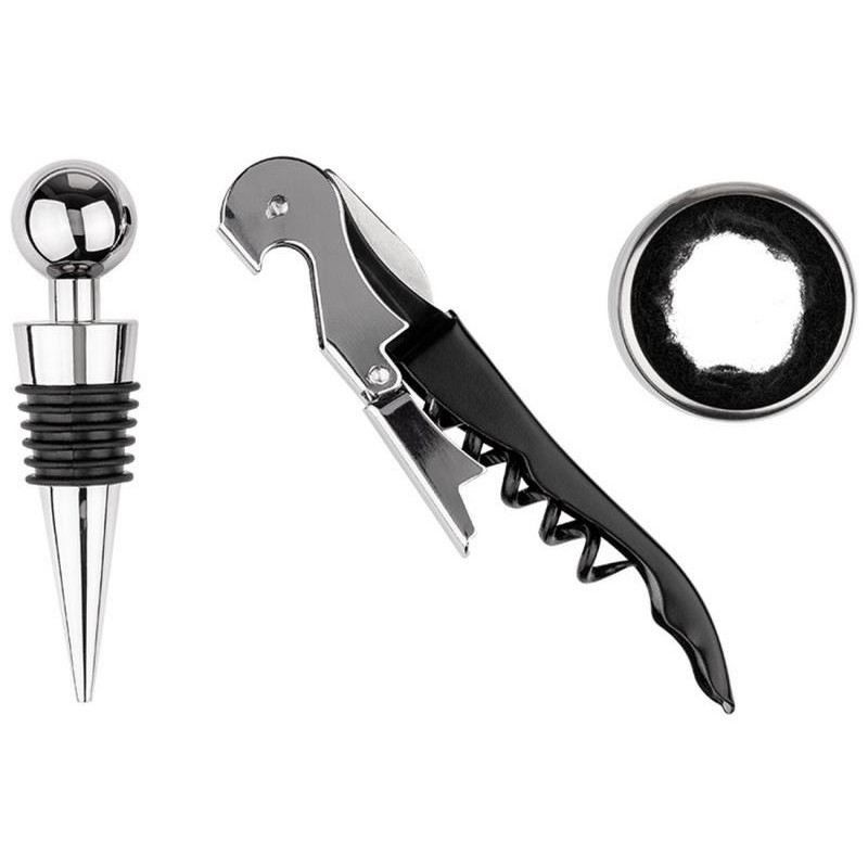 3пр, штопор/кольцо-каплеулавливатель/пробка, кольцо - нерж.сталь+полиэфирное волокно, пробка - ТПР+пластик хромир, штопор раб. часть - металл, нож д/срезания капсулы - карбоновая сталь