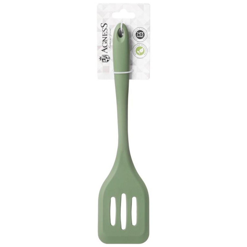 671-512 Лопатка силиконовая с прорезями Agness 29.5х6.8х2.3см (зеленый)