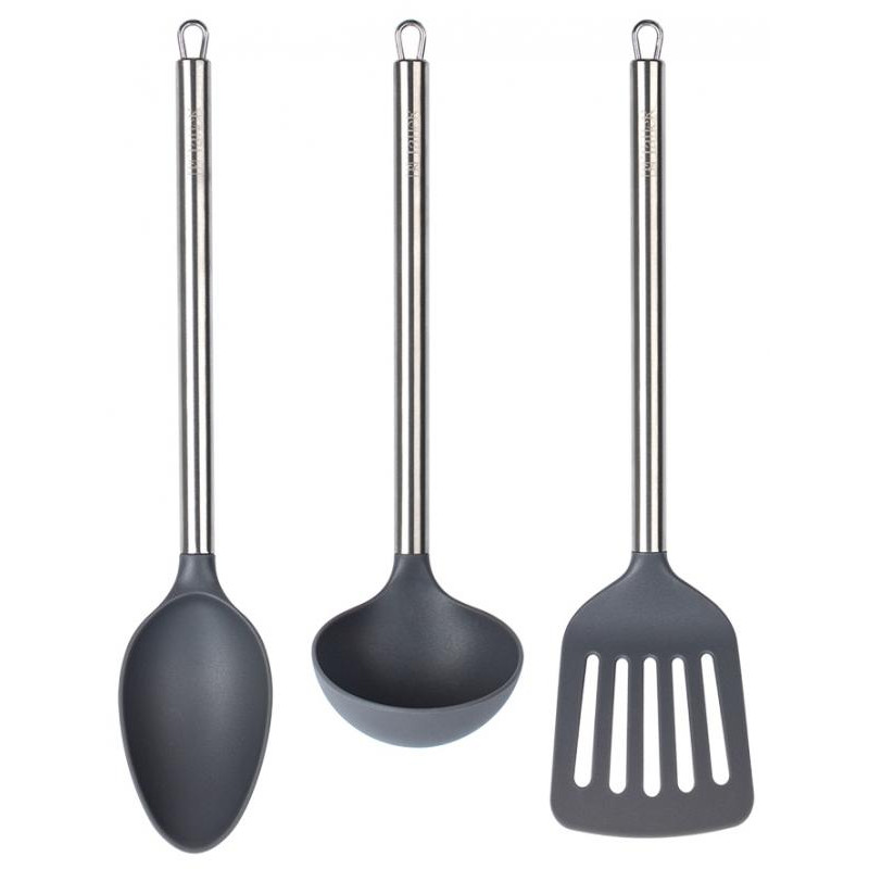 3 предмета, пластик/нерж.сталь, половник 30см, ложка поварская 35см, лопатка перфорированная 35см, упаковка европодвес, можно мыть в посудомоечной машине