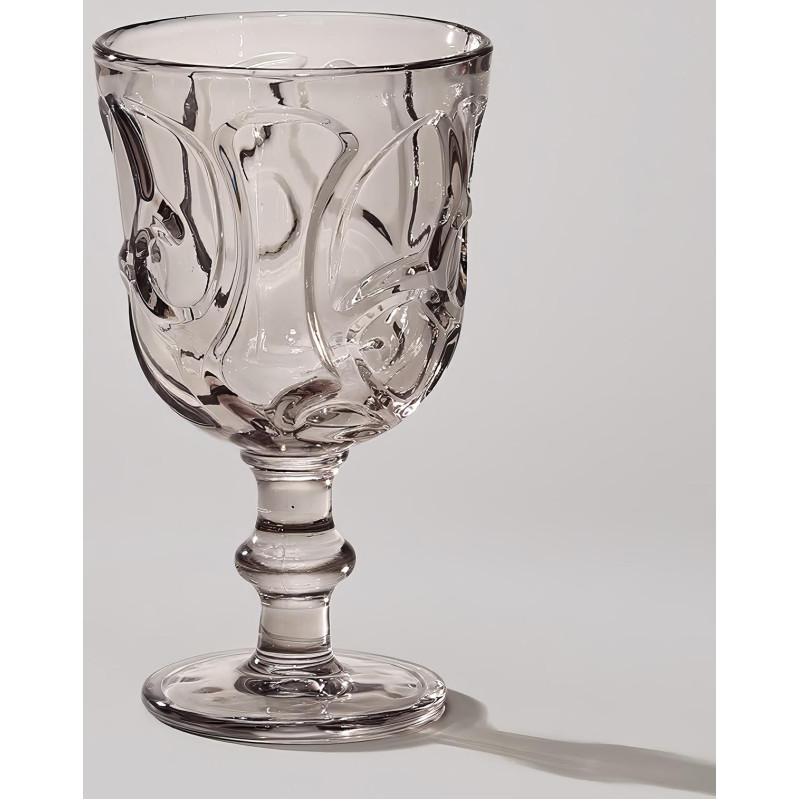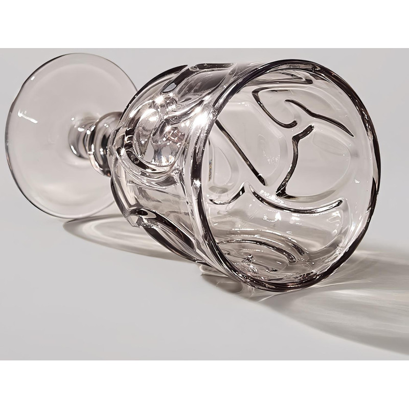 Сделанный из высококачественного стекла, этот бокал не только красив, но и практичен. Его удобная ножка обеспечивает стабильность, а высокая стенка позволяет наслаждаться любимыми напитками, сохраняя их идеальную температуру. Чашка бокала, украшенная уникальным рельефным орнаментом, превращает каждое питье в настоящее эстетическое наслаждение.