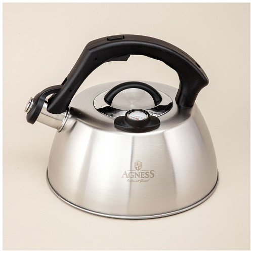 Чайник со свистком, 2, 80л термоаккумулирующее дно, индукция, встроенный термометр AGNESS 908-067