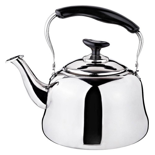 Благодаря пластиковой вставке чайник удобно переносить, а встроенный свисток подскажет, что вода в чайнике закипела и его пора снимать с плиты.