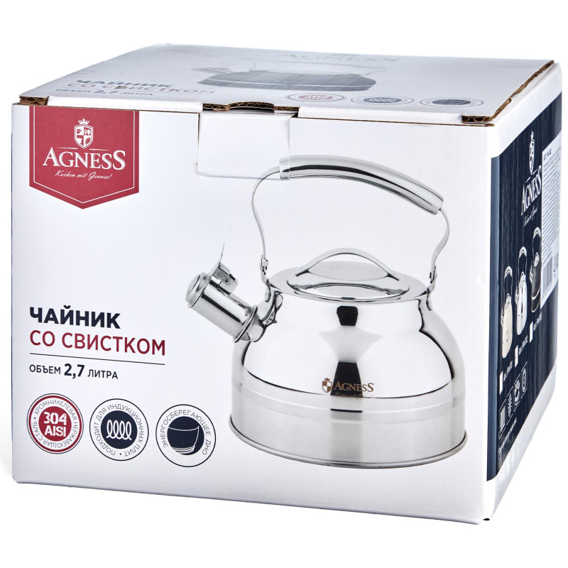 Чайник со свистком 2, 7л, термоаккумулирующее дно, 304 сталь, индукция AGNESS 914-302