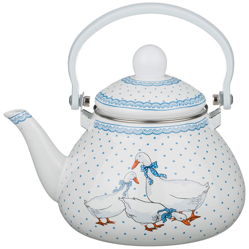 Чайник эмалированны со съемным фильтром из нжс, серия "ГУСИ" 1,3 л. (кор=8шт.) AGNESS 934-346