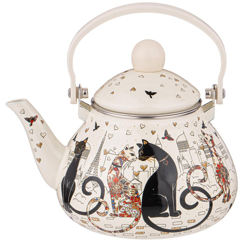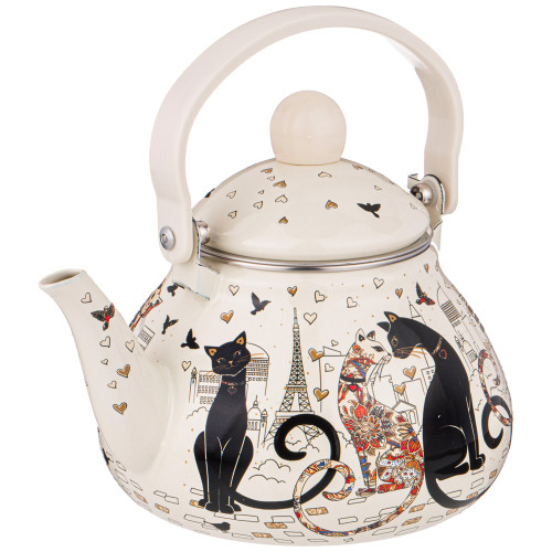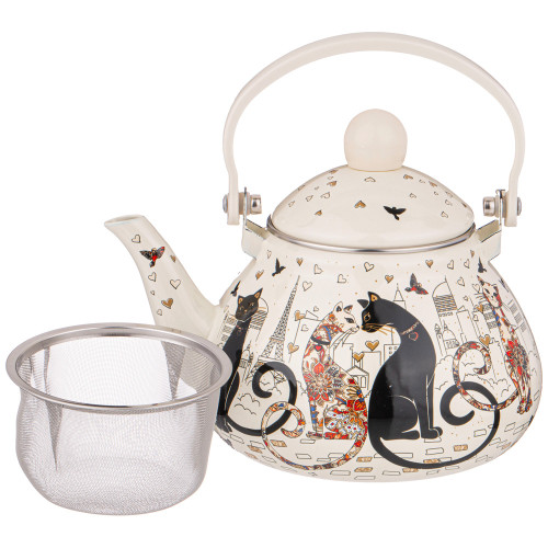 Чайник эмалированный со съемным фильтром из нжс, серия" ПАРИЖСКИЕ КОТЫ" 1,3 л. AGNESS 934-390