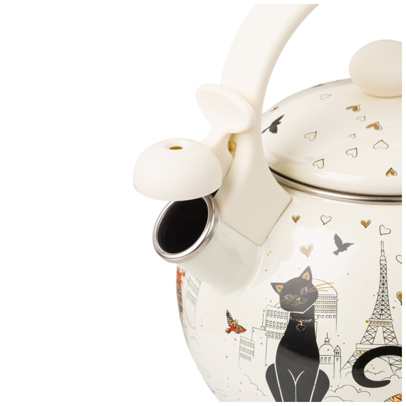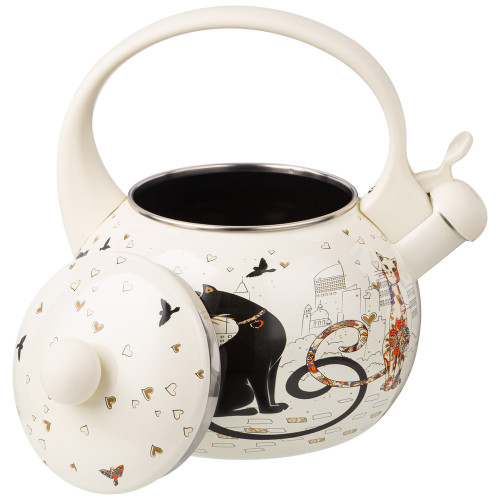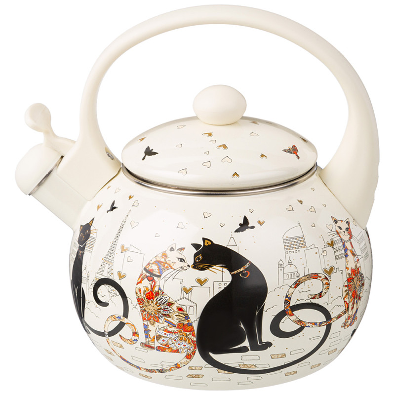 Чайник эмалированный со свистком, серия "ПАРИЖСКИЕ КОТЫ" 2,2л, индукционное дно AGNESS 934-394