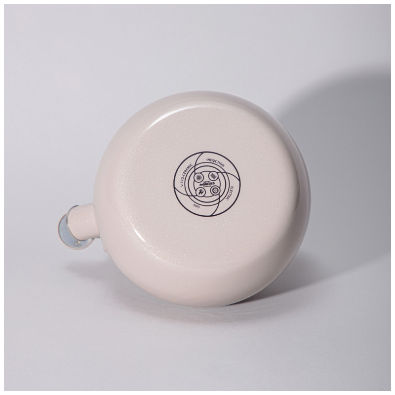 Толщина корпуса без эмалированного покрытия 0, 8мм. 3-х слойное эмалированное покрытие - грунтовое, базовое и финишное покрытие с глиттером. Подходит для всех типов плит, включая индукционные. РЕКОМЕНДОВАНА РУЧНАЯ МОЙКА
