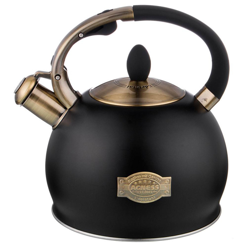 Чайник со свистком, серия черное золото, 3, 0 л термоаккумулирующее дно, индукция (кор=6шт) AGNESS 937-820