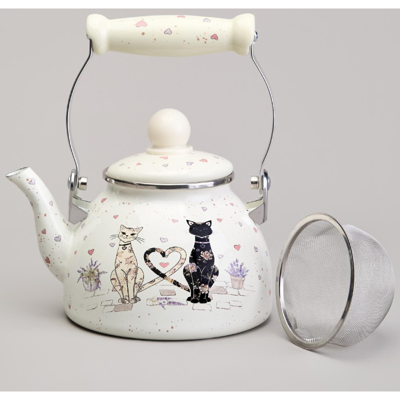 Чайник эмалированный со съемным фильтром из нжс серия "LAVENDER CATS", 1,1 л AGNESS 943-071