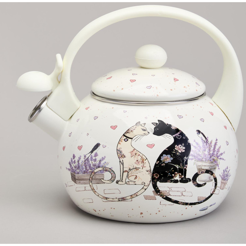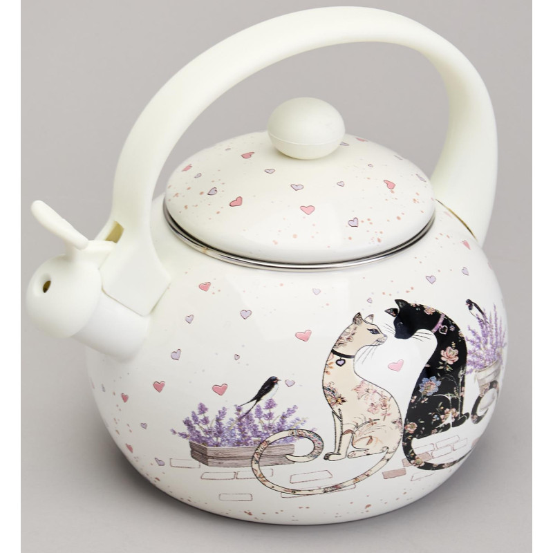 Чайник эмалированный со свистком серия "LAVENDER CATS", 2,2 л AGNESS 943-074