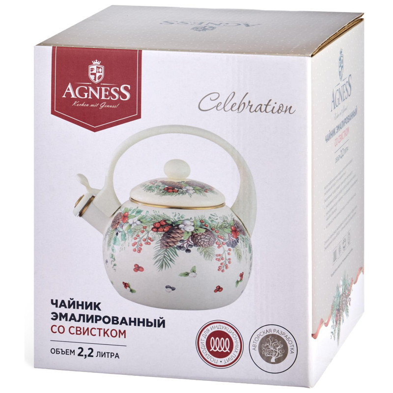 Чайник эмалированный со свистком серия "CELEBRATION", 2,2л, индукционное дно AGNESS 943-080