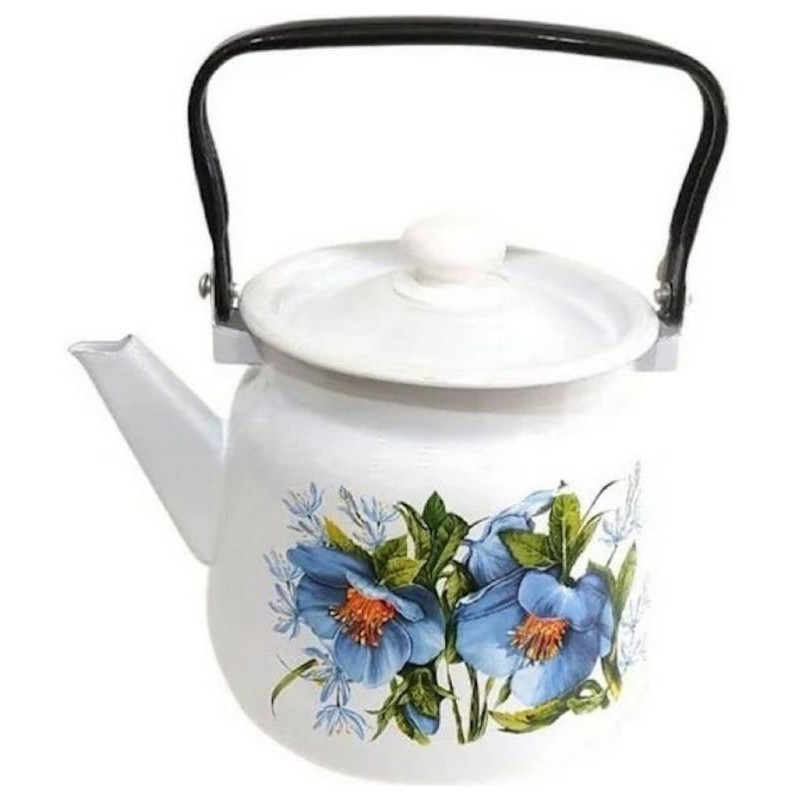 С2716.3*96 Чайник эмал. 3.5л сфер. белый с кнопкой Цветы синие