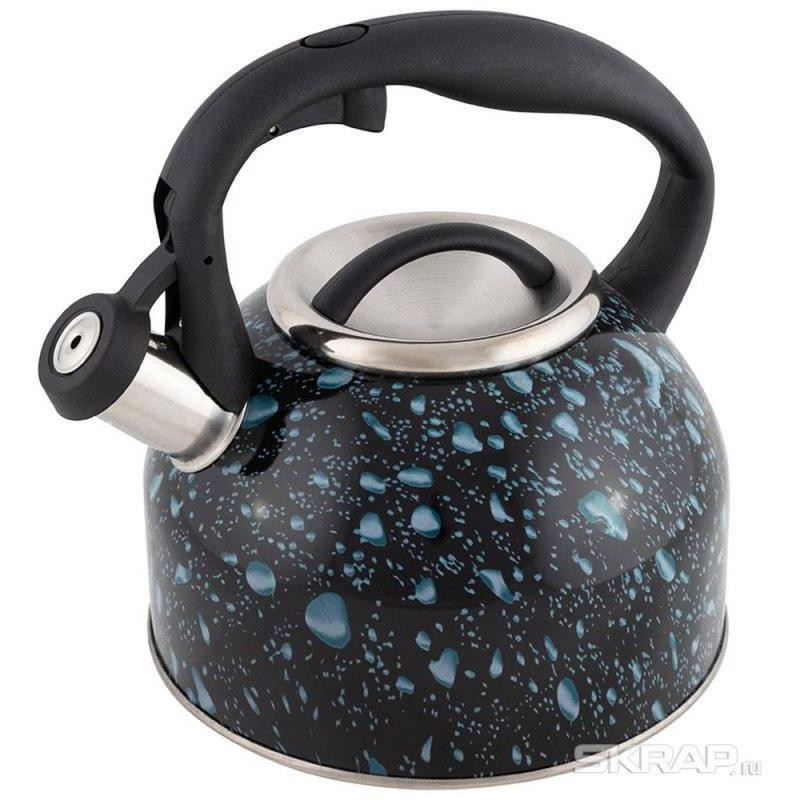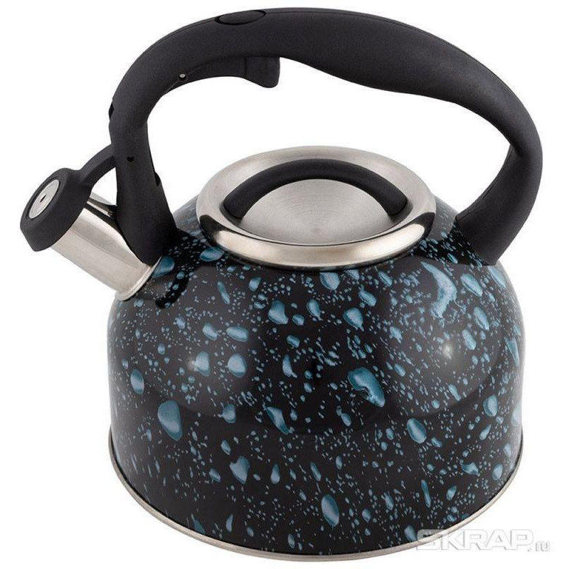 003979 Чайник из нерж.стали Mallony LACRIMA (2.5л, со свистком, черный с синими каплями)