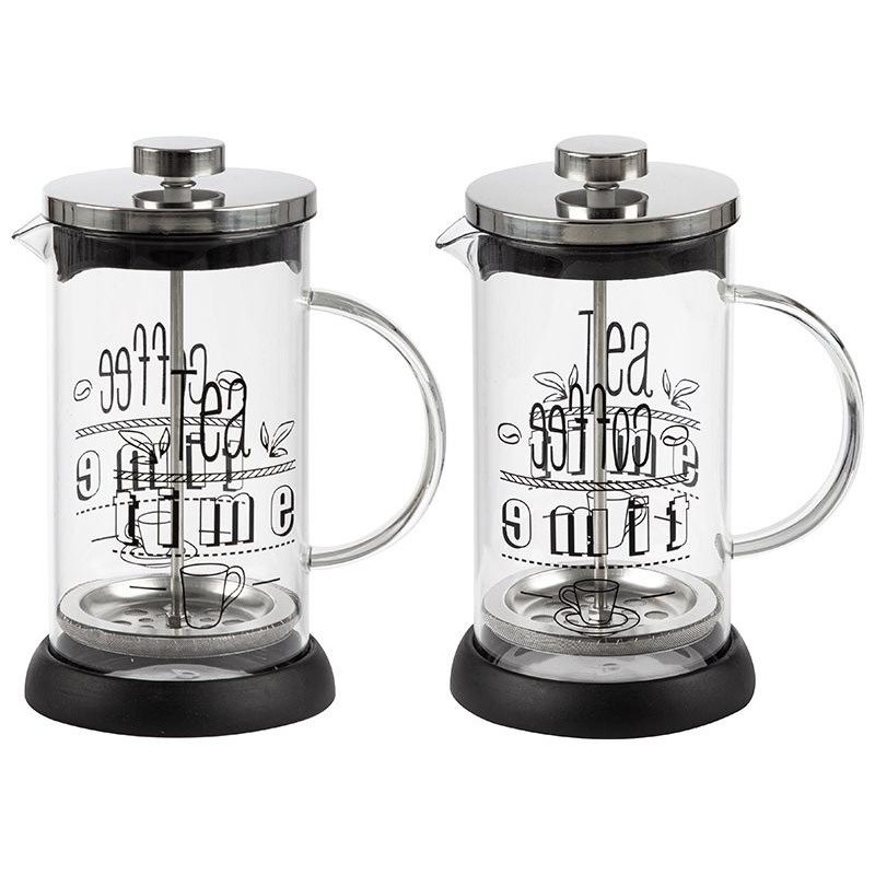 007530 Чайник/кофейник (кофе-пресс) MOMENTO 350мл из боросиликатного стекла с надписью на корпусе