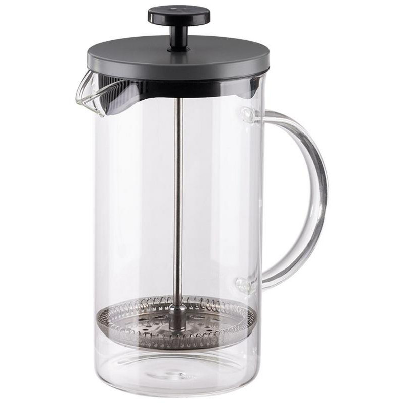 Френч-пресс Grigio, объём 600мл, со стеклянной ручкой/с окрашенной стальной крышкой, жаропрочное стекло, фильтр из нерж стали, пластмасса, нерж сталь 201. Коэффициент линейного расширения стекла: 3.3. Темп режим: - 20С до +150С.