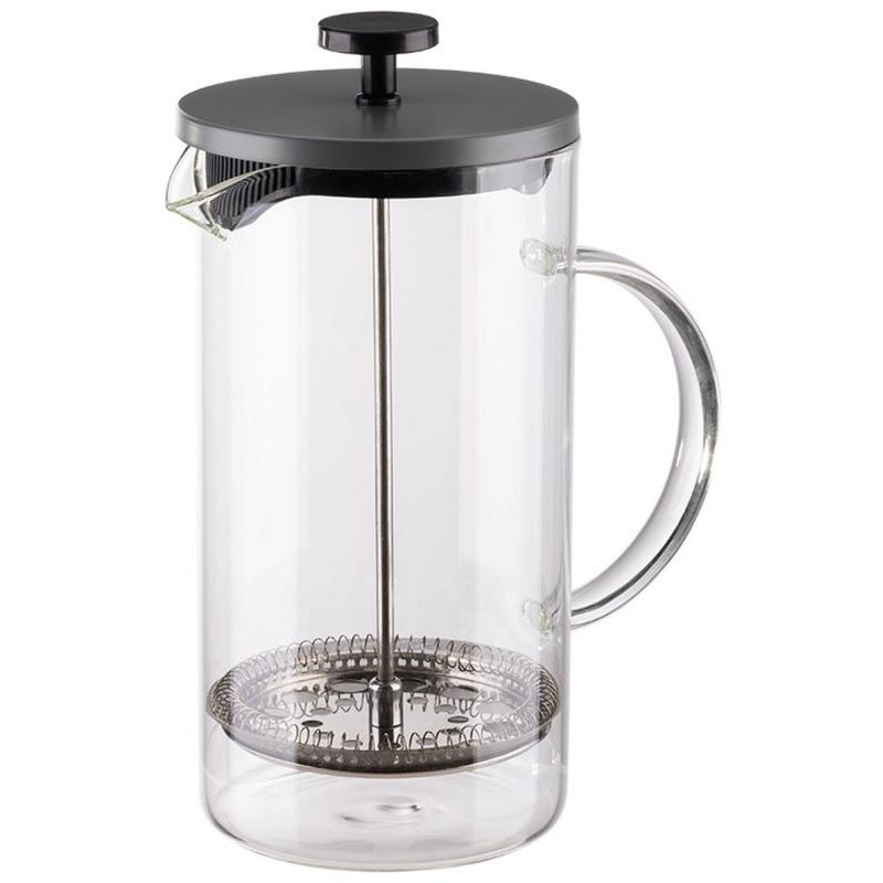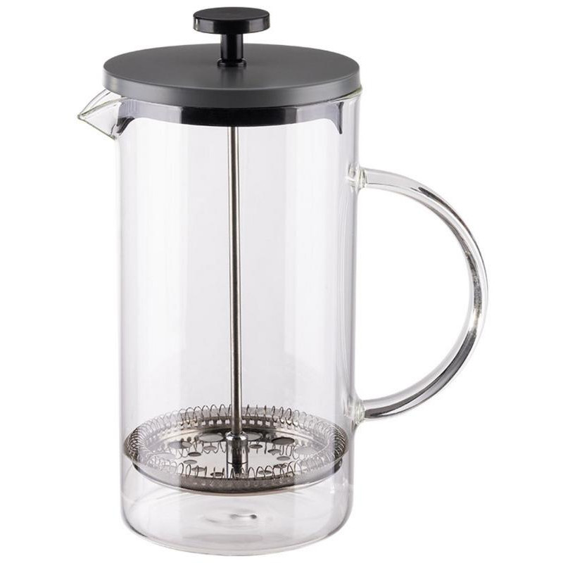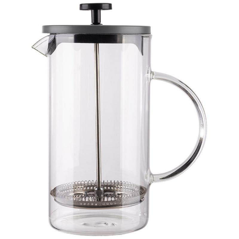 Френч-пресс Grigio, объём 1000мл, со стеклянной ручкой/с окрашенной стальной крышкой, жаропрочное стекло, фильтр из нерж стали, пластмасса, нерж сталь 201. Коэффициент линейного расширения стекла: 3.3. Темп режим: - 20С до +150 С.