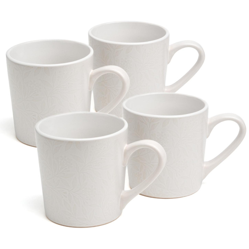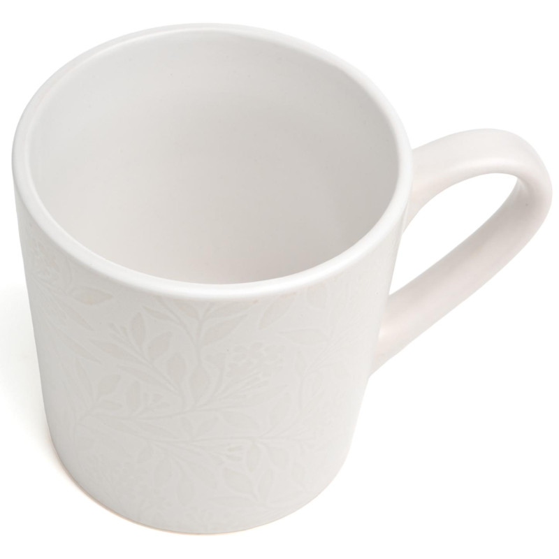 Благодаря сочетанию однотонного фона с красивыми рельефными акцентами в виде трав и цветов, эта посуда удачно впишется в любой интерьер.