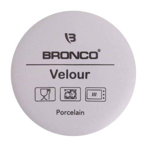 ТМ BRONCO коллекция "VELOUR" - модное богатство пастельных оттенков и полутонов. Упрочненный качественный фарфор. Современная форма и удобный объем. Уникальное сочетание матовой и блестящей глазури, приятные тактильные ощущения. Каждому члену семьи свой цвет! Надолго сохраняет свой первоначальный вид. Посуда прошла сертификацию. Безопасна для контакта с пищевыми продуктами. Можно смело использовать в микроволновой печи, ставить в холодильник и мыть в посудомоечной машине.