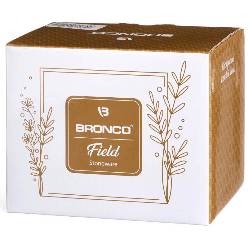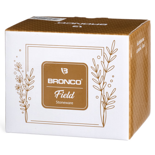 Коллекция ТМ BRONCO "Field" максимально приближена к природе и тяготеет к простым формам и натуральным цветам. Изделия выполнены из высокотемпературной каменной керамики и обожжены при температуре от 1100 до 1400 градусов. При такой температуре вода и воздух из глиняной массы полностью испаряются, и изделия становятся легче, плотнее, крепче, приближаясь по своим характеристикам к фарфору. Современные рестораторы выбирают каменную керамику именно из-за её прочности и стойкости к перепадам температур. Рельефный лиственный узор выполнен на глянцевой реактивной глазури, которой покрыта каменная керамика. Это добавляет изысканности и приятной тактильности. Изделия не впитывают вкусы и запахи продуктов, хорошо сохраняют тепло и холод, прошли сертификацию и безопасны для использования с пищевыми продуктами. Каменную керамику можно мыть в посудомоечной машине, использовать в микроволновой печи.