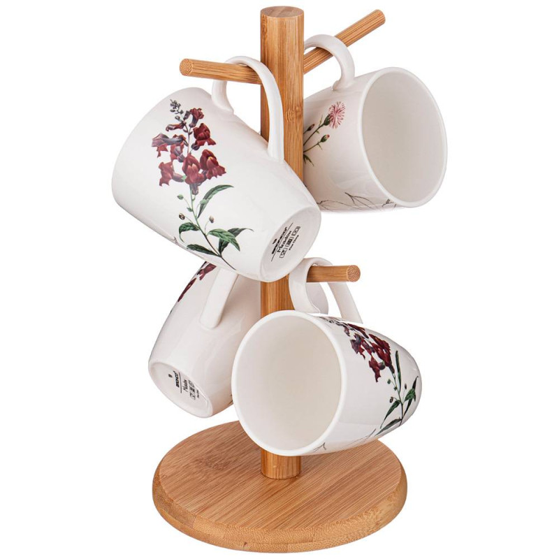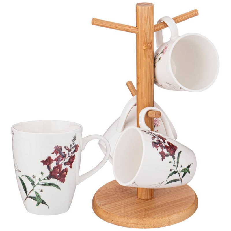 Набор из 4 кружек "MEADOW" на деревянной подставке 300 мл (кор=12наб.) BRONCO 474-131