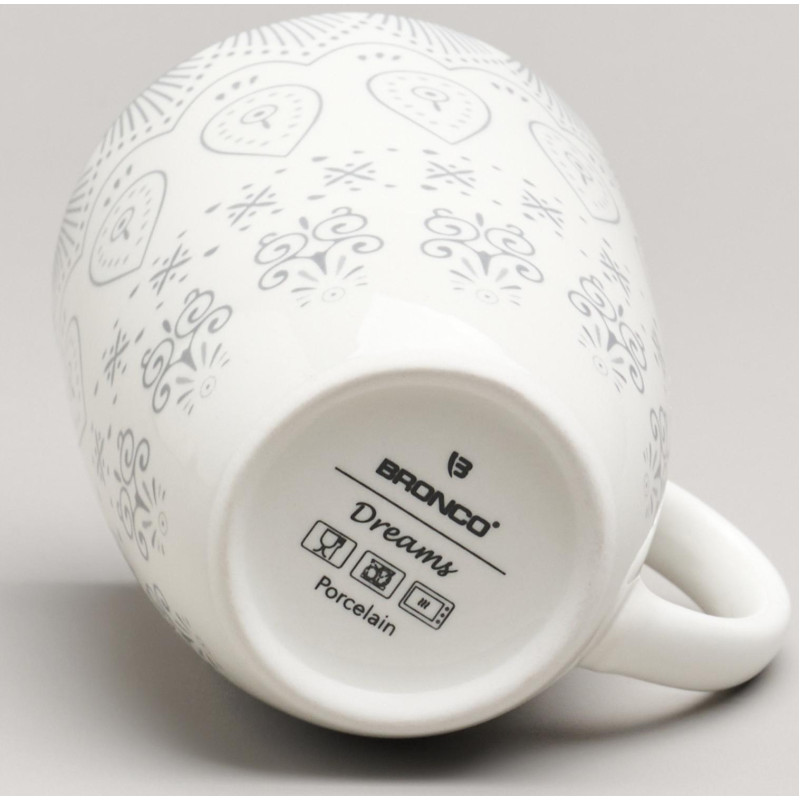 ТМ BRONCO «DREAMS» - идеальное решение для тех, кто ценит качество, стиль и практичность в сервировке. Нежные оттенки серого, орнамент с восточными мотивами, геометрический узор и цветочные мотивы добавят энергии и сил на целый день. Коллекция выполнена из качественного фарфора, покрыта толстой прозрачной глазурью, рекомендована для повседневного использования, хорошее сочетание цены и качества. Посуда прошла сертификацию и безопасна для контакта с пищевыми продуктами, легко моется в посудомоечной машине и подходит для использования в микроволновой печи.