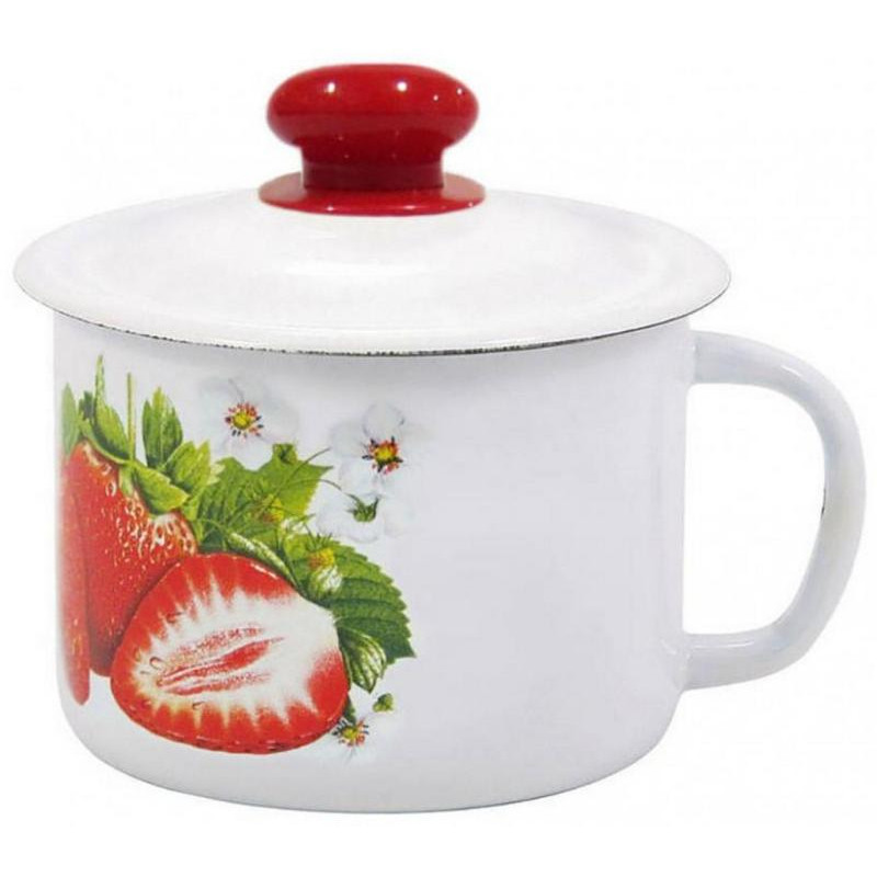 С0207.3*59 Кружка с крышкой эмал. 1л деколь Клубника садовая