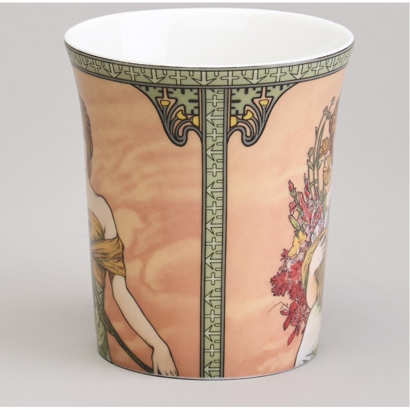 Арт Коллекция для ценителей прекрасного. Изделия из тонкостенного фарфора. Посуда прошла сертификацию, безопасна для контакта с пищевыми продуктами. Декор по мотивам картин Альфонса Мария Мухи. Удобная форма. Отличный подарок. Можно использовать в микроволновой печи и мыть в посудомоечной машине.