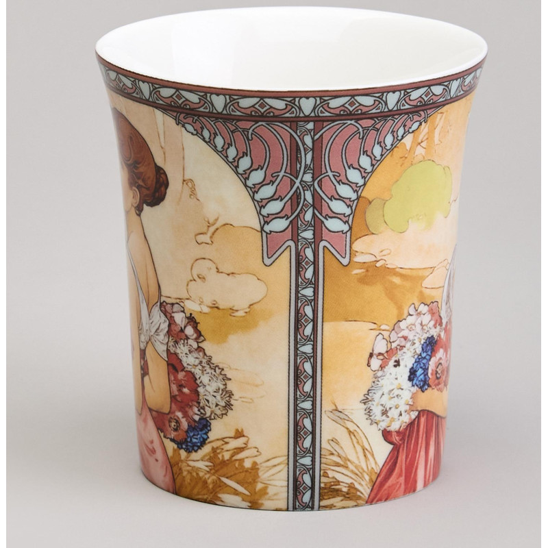 Арт Коллекция для ценителей прекрасного. Изделия из тонкостенного фарфора. Посуда прошла сертификацию, безопасна для контакта с пищевыми продуктами. Декор по мотивам картин Альфонса Мария Мухи. Удобная форма. Отличный подарок. Можно использовать в микроволновой печи и мыть в посудомоечной машине.