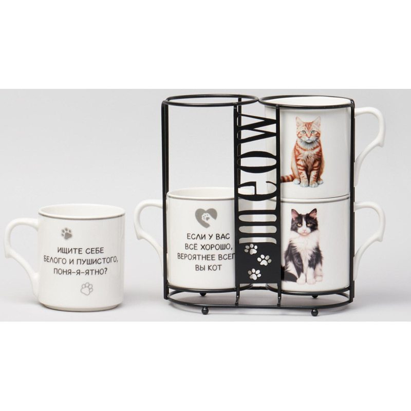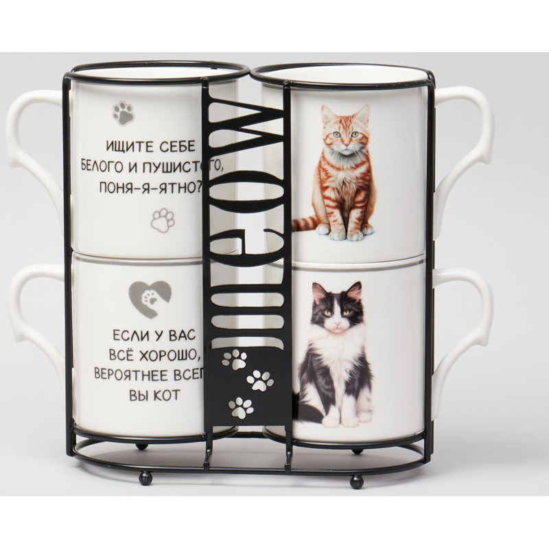 Набор кружек "MEOW" 4шт на подставке 368мл. (кор=8шт.) LEFARD 153-946