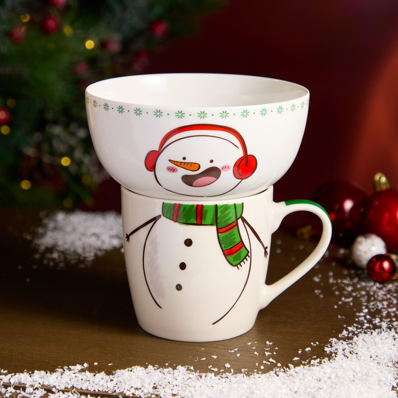 Набор посуды "СНЕГОВИК" 2 пр. (кружка 360мл, салатник 500мл) LEFARD 260-1066