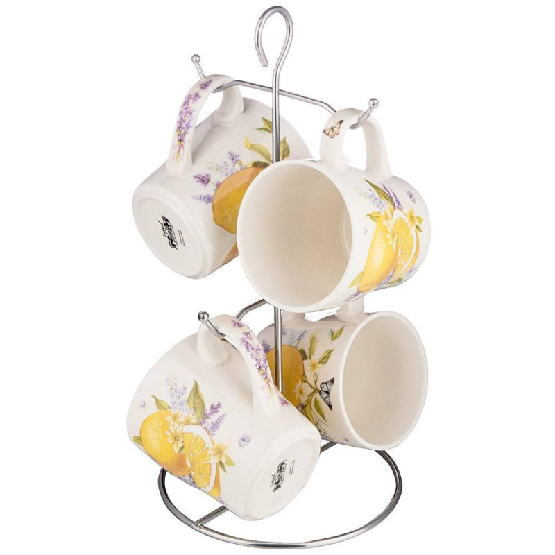 Набор кружек на металл.подставке " ПРОВАНС ЛИМОНЫ" 4 шт. 350 мл (кор=4наб.) LEFARD 359-828