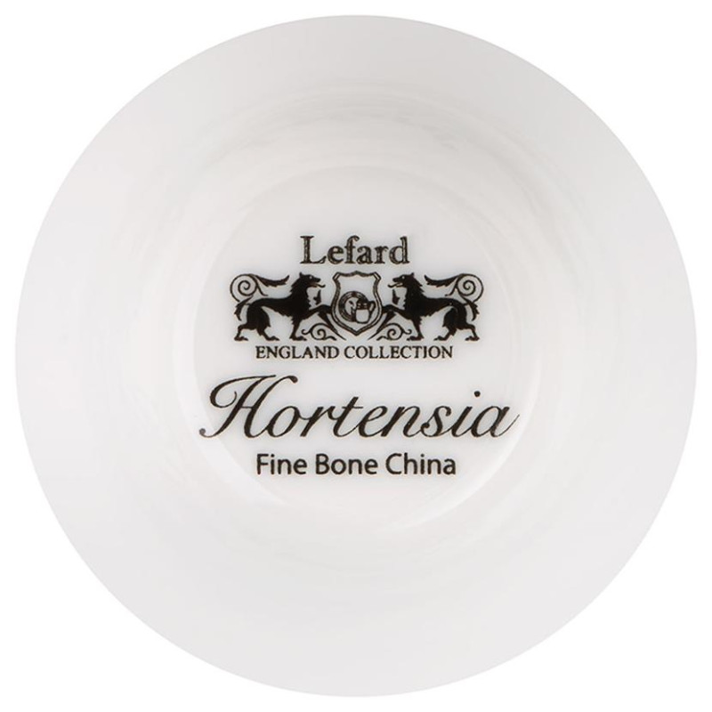 ТМ LEFARD коллекция посуды “Hortensia” выполнена на тонком белоснежном костяном фарфоре с изящным рельефным краем. Эксклюзивный дизайн этого безупречного цветка с ажурными соцветиями символизирует чистоту и изящество, любовь и скромность, положительно влияет на атмосферу взаимопонимания в семье. В течение всего лета гортензия радует глаз всех, у кого есть садовые участки, она меняет оттенки цвета от белого и розового до фиолетового и синего, удивляет своей красотой и совершенством. Теперь она будет радовать Вас за чашкой утреннего кофе, за обеденным столом и в кругу семьи за ужином.