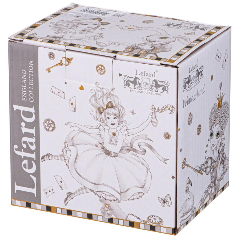 ТМ LEFARD эксклюзивная коллекция «WONDERLAND», созданная по мотивам литературных произведений в стиле фэнтези, на которых воспитывалось не одно поколение детей и выросших взрослых. Удивительную историю девочки, встретившей говорящего Белого Кролика и загадочного Чеширского Кота знает практически каждый на планете. В жизни возможно все, надо лишь в это поверить. Широкий ассортимент тарелок, салатников, кружек, чайных пар поможет организовать «волшебное» чаепитие. Все изделия выполнены из качественного тонкого фарфора. Прямые современные формы, удобные объемы. Стильная, подарочная упаковка. Дарите сказку друзьям и близким людям!