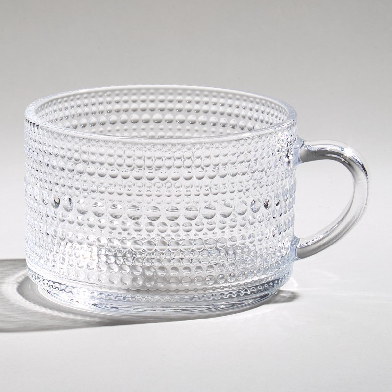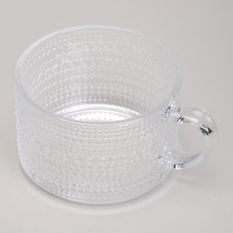 Объем в 400 мл делает её универсальной для различных напитков — от ароматного кофе и чая до освежающих коктейлей, и соков. Прозрачное стекло позволяет насладиться не только вкусом, но и красотой напитка, подчеркивая его насыщенные цвета и текстуры. Узоры на поверхности добавляют визуальное разнообразие, создавая уникальную эстетическую атмосферу.