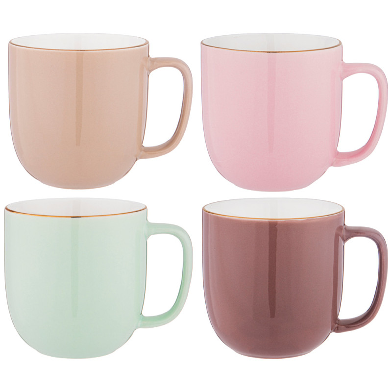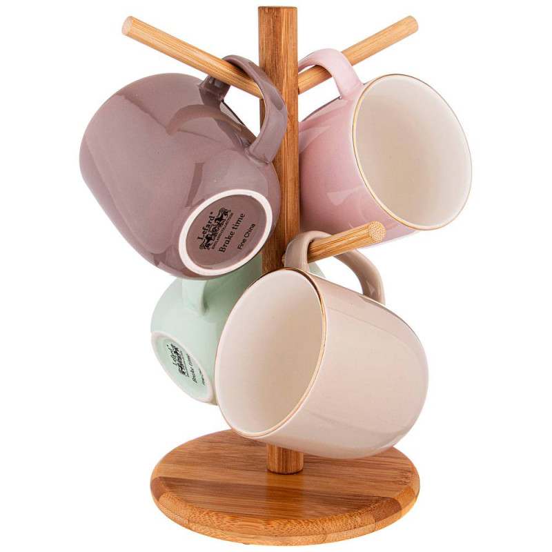 Набор из 4 кружек на деревянной подставке "BREAK TIME" 310 мл пастель (кор=4наб.) LEFARD 756-245