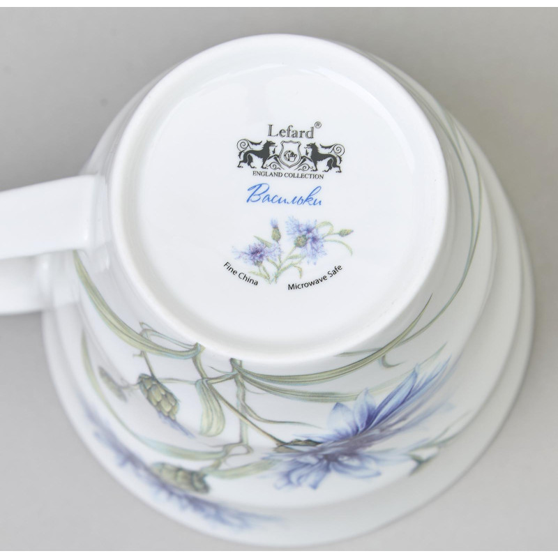 «Васильки» ТМ LEFARD - уникальная коллекция лёгкого, тонкого, прозрачного и прочного фарфора. Изящная рельефная сетка с красивым кантом, сверкающая глазурь. Эксклюзивный дизайн полевого василька небесного цвета, создающего романтическое настроение. Оригинальное размещение дизайна на рельефной части изделий, что создает дополнительную игру рисунка и объем. Широкий ассортимент позволяет сервировать обеденный стол, вечернее чаепитие – идеальный вариант для всех случаев сервировки. Коллекция представлена чайным сервизом, чайными парами удобных объемов, десертными тарелками. Стильная цветная коробка, прекрасный подарок. Все изделия прошли сертификацию. Безопасны для контакта с пищевыми продуктами. Можно смело использовать в микроволновой печи и мыть в посудомоечной машине.
