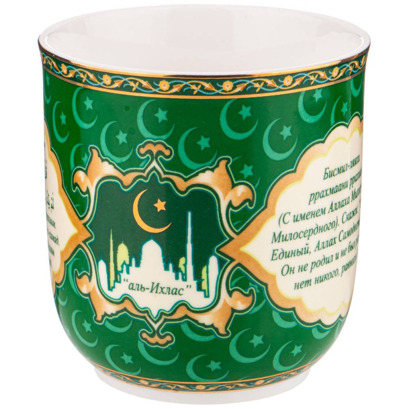 ТМ LEFARD представляет эксклюзивную коллекцию посуды «Суры из Корана». Кувшины, чайники, сахарницы, кружки, чайные пары, декоративные тарелки и другие предметы выполнены из высококачественного тонкостенного фарфора. Восточный орнамент, небольшие отрывки Сур из Корана на классическом арабском и русском языках с отделкой золотом украшают изделия. Это прекрасный мусульманский подарок, всегда нужный и теплый. Относитесь к нему бережно и с почтением. Посуду коллекции можно использовать как в повседневной жизни, так и на торжественном приеме. Не рекомендуется мыть в посудомоечной машине и использовать в микроволновой печи.