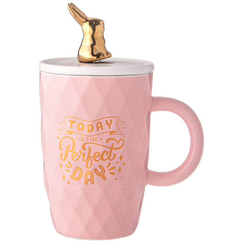 Позитивная кружка с фигуркой зайца на ложке. Объем кружки 390 мл. Высота кружки с крышкой 17см. Цвет: розовый. Кружку можно использовать в СВЧ и посудомоечных машинах. Ложку нельзя мыть в ПММ и использовать в СВЧ.