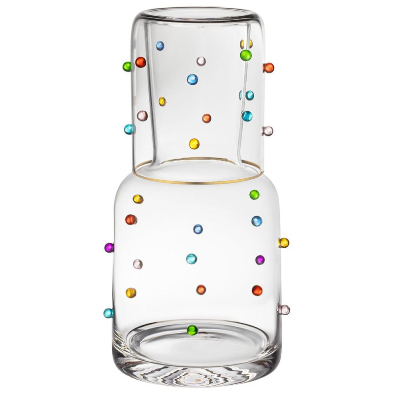 Графин с крышкой-стаканом декорирован вручную. Это придает ему особую атмосферу и делает особенным и неповторимым.