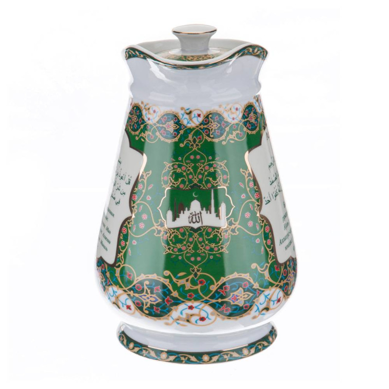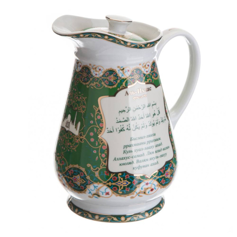 ТМ LEFARD представляет эксклюзивную коллекцию посуды «Суры из Корана». Кувшины, чайники, сахарницы, кружки, чайные пары, декоративные тарелки и другие предметы выполнены из высококачественного тонкостенного фарфора. Восточный орнамент, небольшие отрывки Сур из Корана на классическом арабском и русском языках с отделкой золотом украшают изделия. Это прекрасный мусульманский подарок, всегда нужный и теплый. Относитесь к нему бережно и с почтением. Посуду коллекции можно использовать как в повседневной жизни, так и на торжественном приеме. Не рекомендуется мыть в посудомоечной машине и использовать в микроволновой печи.