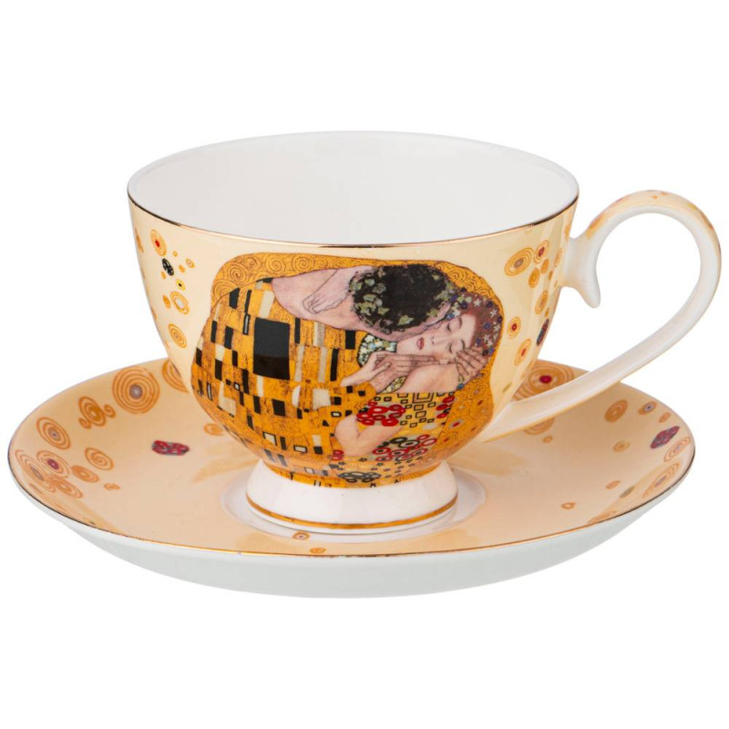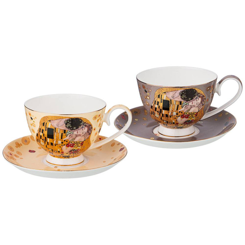 Чайный набор "ПОЦЕЛУЙ" (г. климт) на 2пер.4пр.250 мл, кремовый, серый (кор=12наб.) LEFARD 104-665